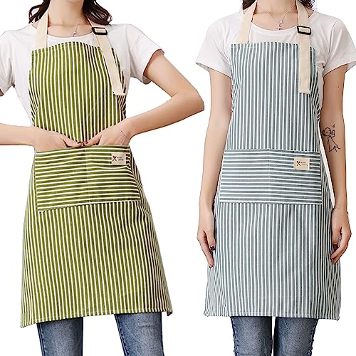 Lofekea - لوفيكيا مريلة، عبوتان من مرايل الطبخ للمطبخ، مريلة شيف قابلة للتعديل مع جيبين للرجال والنساء، ازرق/اخضر، مقاس L
