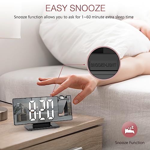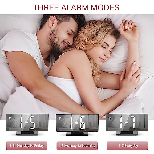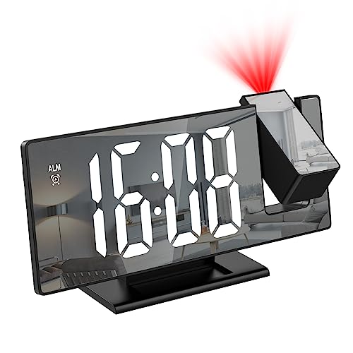 LOFICOPER - ساعة منبه رقمية من لوفيكوبر بإضاءة ليد ونظام عرض الوقت بالإسقاط على الحائط أو السقف لغرفة النوم، 7.8 بوصة (20 سم) مع جهاز عرض بروجكتور قابل للدوران 180 درجة، غفوة، سطوع قابل للتعديل، وضع يوم العمل
