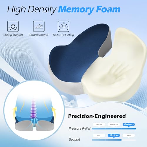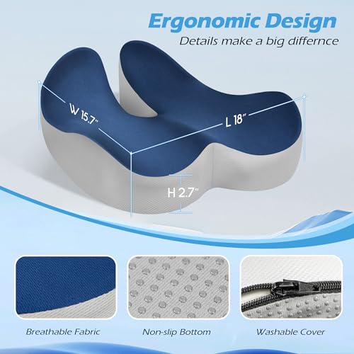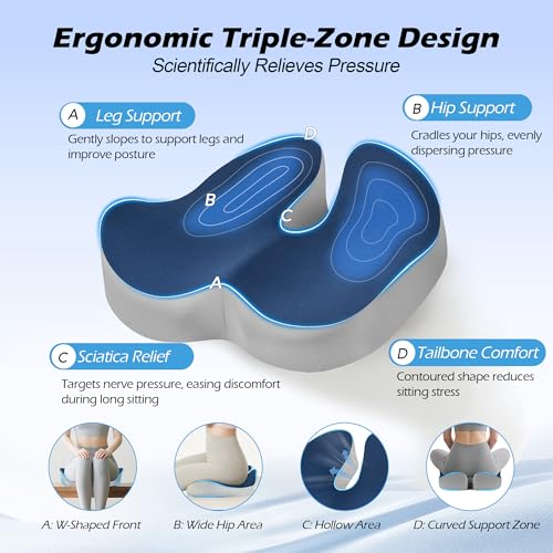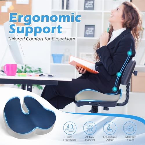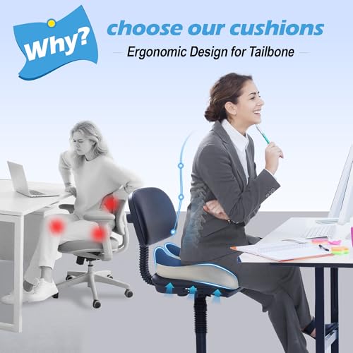 Lofty Aim - وسادة كرسي مكتب، وسادة مقعد مريحة من الميموري فوم، وسادة لتخفيف الام عظم النسا وعرق النسا، وسادة مكتب لكرسي المكتب ومقعد السيارة والطائرة والكرسي المتحرك - ازرق ورمادي