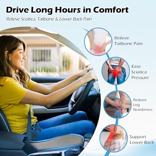 - خذ الراحة في أي مكان تذهب إليه - وسادة مقعد عالمية تناسب معظم الكراسي، وتعمل كوسادة لكرسي المكتب للمؤخرة، وسائد مقعد السيارة للقيادة، وسادة كرسي الكمبيوتر، وسائد الكرسي المتحرك، وسادة مقعد الطائرة، إلخ. رائعة للعاملين في المكاتب والسائقين وسائقي الشاحنات والمعلمين وكبار السن والحوامل وغير ذلك الكثير