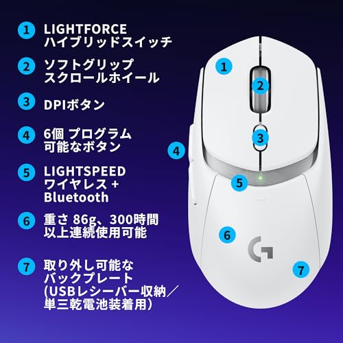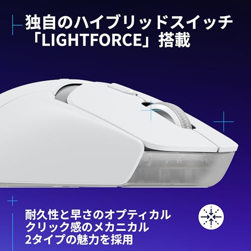 - مزود بمفتاح هجين حصري من لوجيتك جي "لايت فورس" / مفتاح ميكانيكي بنقرة ومفتاح بصري لتشغيل سريع ودقيق، مفتاح هجين يتضمن أفضل ما في العالمين؛ أداء ومتانة عالية للألعاب.