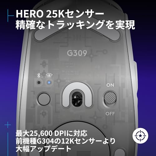 - الماوس مزود بمستشعر هيرو 25K؛ تحديثات كبيرة مقارنة بمستشعر 12K في طراز G304 السابق، وتستجيب بدقة للعمليات على مستوى الميكرون الفرعي.