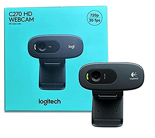 Logitech - كاميرا ويب عالية الدقة HD C270 من لوجيتك| 720 بيكسل/ 30 اطار في الثانية | ميكروفون مدمج للحد من الضوضاء | تصحيح الضوء التلقائي | لسكايب، فيس تايم، هانج اوت، ويب اكس، الكمبيوتر، ماك بوك واجهزة التابلت