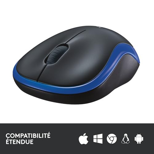 Logitech - ماوس كيبلوس M185 للكمبيوتر واللابتوب وماك بمستقبل USB نانو 2.4 جيجاهرتز وعمر بطارية 2 شهر ومتعقب بصري 1000 نقطة/ بوصة وحركة لليسا واليمين - ازرق