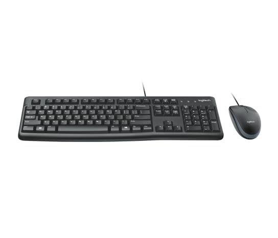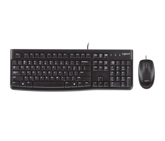 Logitech - لوحة مفاتيح وماوس بسلك لسطح المكتب MK120 من لوجيتك، لون أسود
