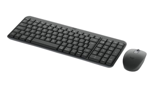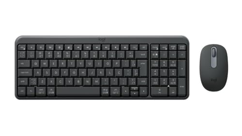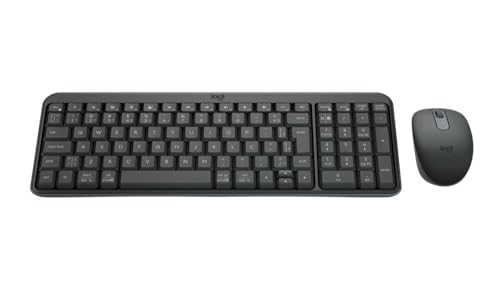 Logitech - لوجيتيك كيبورد وماوس لاسلكي صغير الحجم MK250 يعمل بالبلوتوث لنظام التشغيل ويندوز، بطارية تدوم 12 شهر - جرافيت