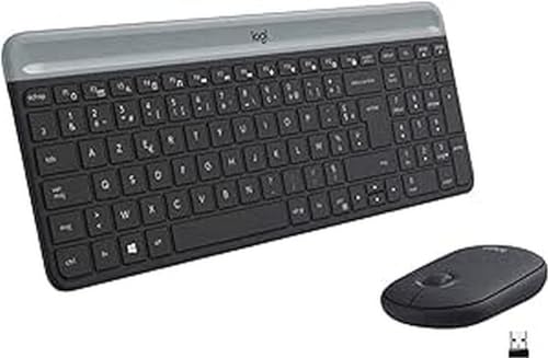 Logitech - لوحة مفاتيح نحيفة وماوس لاسلكي من لوجيتيك MK470 بتصميم فرنسي، ازيرتي- اسود