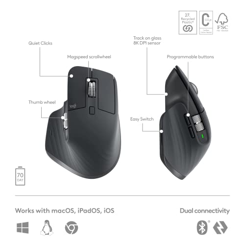 - قم بتمرير 1000 خط في الثانية: مع ماجسبيد، عجلة التمرير الأسرع والأكثر دقة من لوجيتيك (3)، ومستشعر 8K DPI ، يتتبع ماوس لوجيتيك هذا في أي مكان - حتى على الزجاج (4)