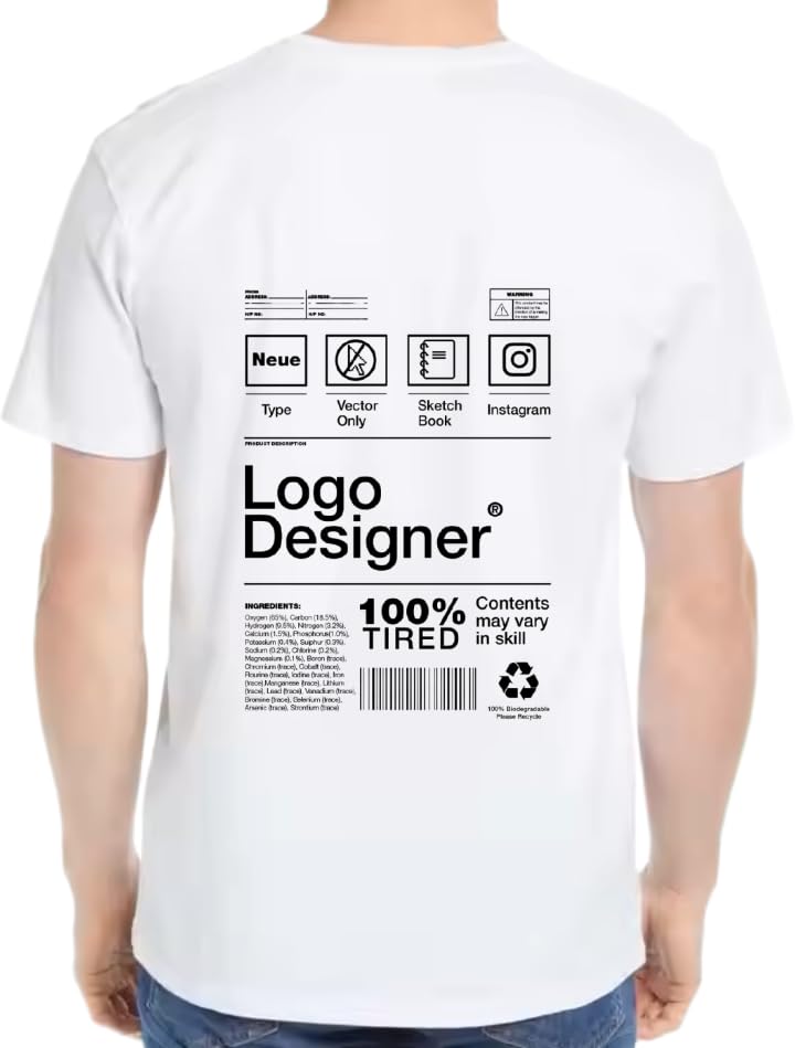 Generic - (تي شيرت بشعار مصمم على الظهر بلون ابيض