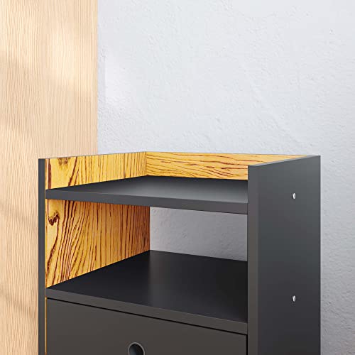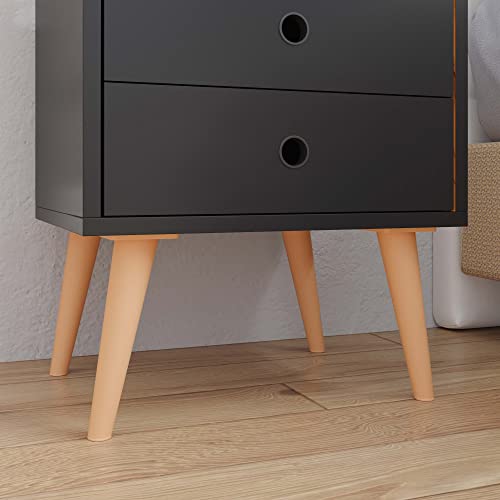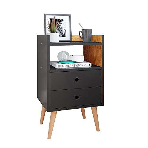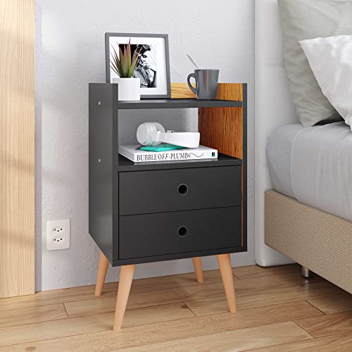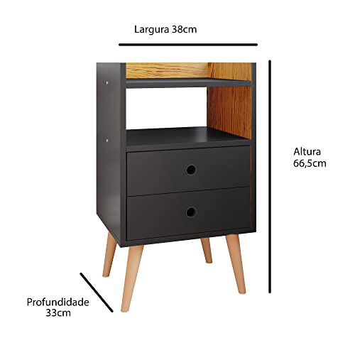 Lojas RPM - ترابيزة سرير دريم بدرجين وأقدام بنمط ريترو (لون أسود/ طبيعي داخلي)، بلاستيك