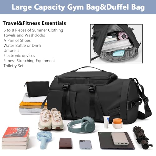 LOKASS - لوكاس شنطة صالة الالعاب الرياضية للرجال والنساء - شنطة دفل رياضية مع جيب للحذاء، شنطة حمل لعطلة نهاية الاسبوع/شنطة ليلية