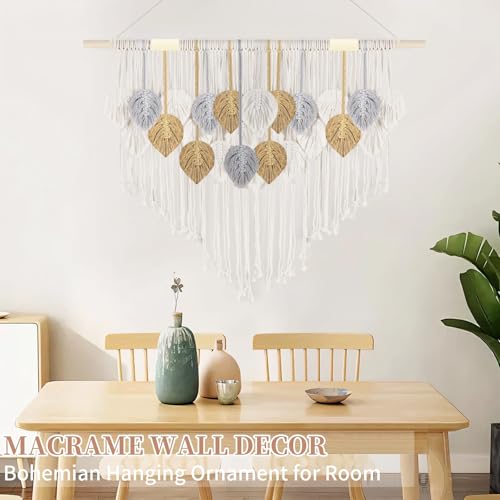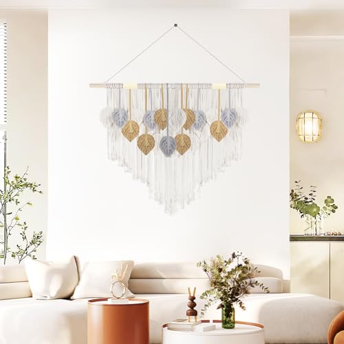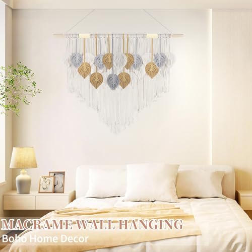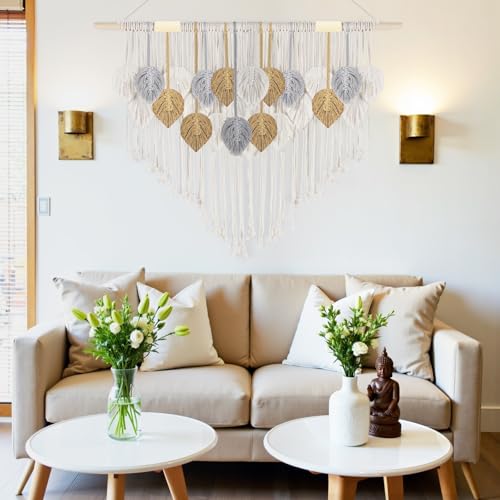 lokeisna - مكرمية ديكور للتعليق على الحائط بنمط بوهو عصري، بساط حائط لغرفة النوم فوق السرير وغرفة المعيشة ولتزين الغرف ولديكور الحائط، 99 × 66 سم، أصفر ورمادي