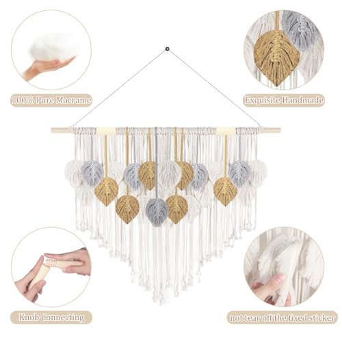 - مكرمية فاخرة للتعليق على الحائط: تم صنعها من حبل من القطن الخالص المتين وأوراق مكرمية ناعمة بدقة وشراشيب وأعمدة خشبية طبيعية عالية الجودة لجمال وملمس يدوم طويلًا.