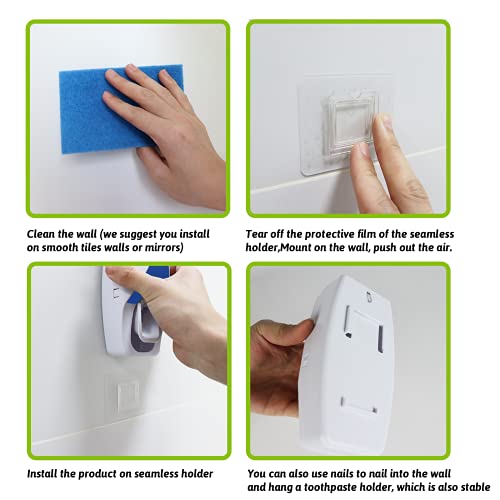 - تصميم حامل معجون الأسنان- موزع معجون الأسنان الأزرق الخاص بنا مصنوع من البلاستيك القوي والمتين، مع تصميم سهل التركيب من على الظهر، ومزود بشريط لاصق بقدرة التصاق جيدة، مقاومة للماء والسقوط. يتميز موزع معجون الأسنان الأزرق لدينا بتصميم فتحة صغيرة من على الظهر، ويمكنك أيضًا تثبيته على الجدار للحفاظ عليه ثابتًا.