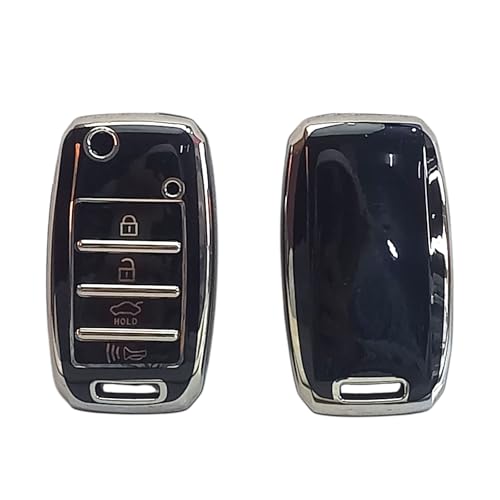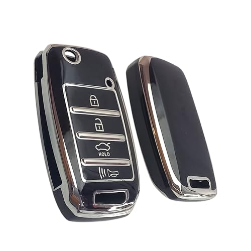 Generic - غطاء مفتاح سيارة قابل للطي، أسود مع كروم، 4 أزرار، حماية لجهاز التحكم عن بعد ، متوافق مع متوافق مع K3، K4، KX3، KX5، سبورتاج R، سورينتو ، من LOKYBOY .