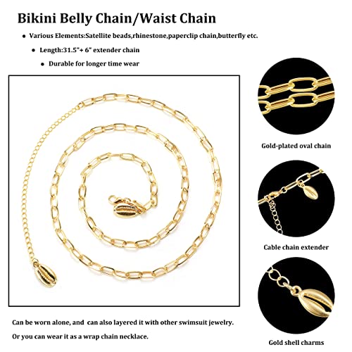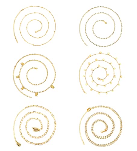 LOLIAS - لولياس سلسلة بطن بيكيني للشاطئ للنساء من 6 قطع من خرز حجر الراين على شكل فراشة، سلسلة خصر مثيرة قابلة للتعديل، مجوهرات للصيف