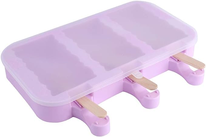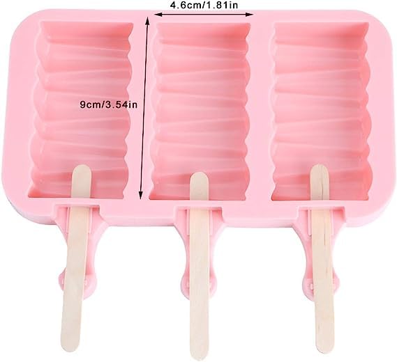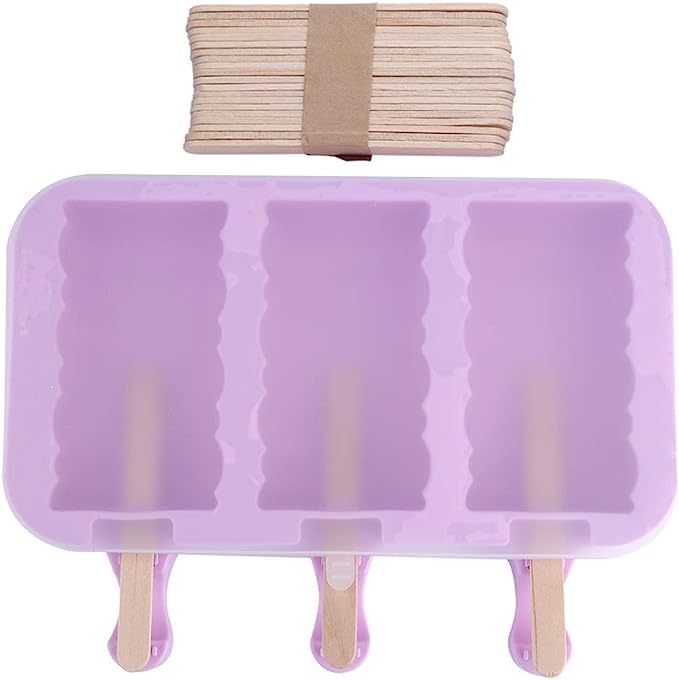 Generic - قالب شوكولاتة ولولي بوب لصنع الايس كريم والجيلي والمصاصة، قابل لإعادة الاستخدام من السيليكون مع عصي خشبية و3 تجاويف (تصميم مموج، أرجواني)