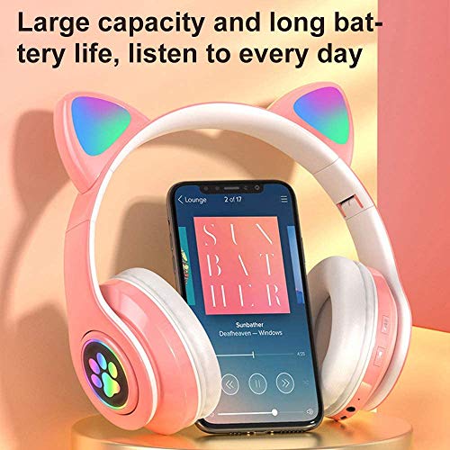 LOLO - سماعات رأس لاسلكية بلوتوث 5.0 مع ميكروفون من لولو، سماعات ستيريو بلوتوث مع خاصية إلغاء الضوضاء مع هاي فاي، متوافقة مع جميع أجهزة البلوتوث (وردي)