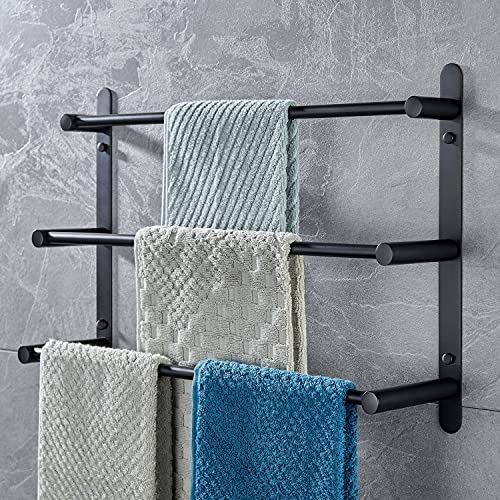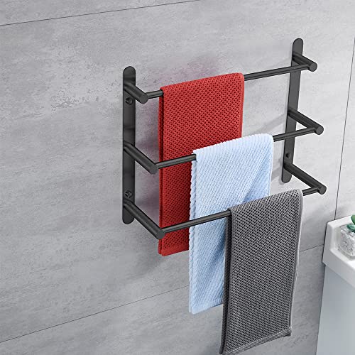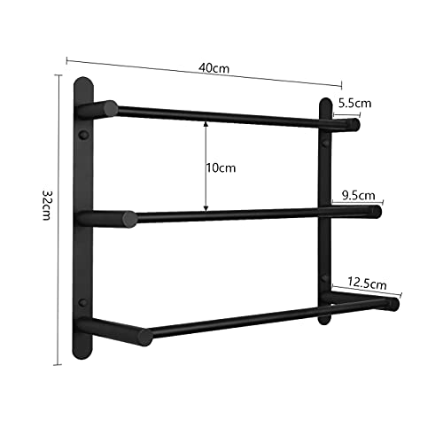 Lolypot - رف فوط مثبت على الحائط من الفولاذ المقاوم للصدأ 304 بثلاث قضبان للحمام والمطبخ من لوليبوت، لون أسود، مقاس 40 سم