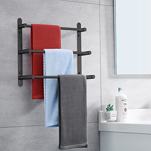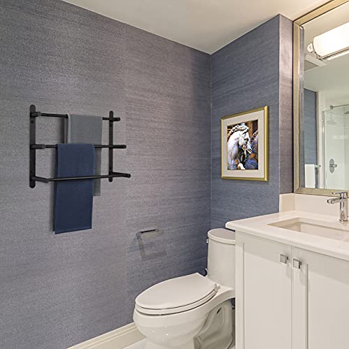 - سعة تحميل عالية: يمكن لهذا الهيكل المثبت على الحائط حمل مناشف الحمام الثقيلة جدًا. قضيب التثبيت السميك ونظام مضاد للقفل يجعل حامل المناشف هذا أكثر صلابة ومثالي للعائلات والفنادق العصرية ويمكنه تعليق وتنظيم مناشف الوجه والحمام والملابس.