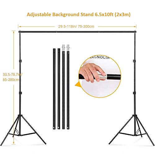 - 【مقاس قابل للتعديل】العرض: 2.3 قدم (1.5 متر)-10 أقدام (3 متر)، الارتفاع: 2.6 قدم (0.7 متر) - 6.5 قدم (2 متر). يمكن تعديل ارتفاع وعرض حامل الخلفية لالتقاط الصور بحرية وفقًا لحجم قطعة قماش الخلفية. حامل مدعوم بقضبان وقابل للثني سهل الاستخدام ومريح للغاية.