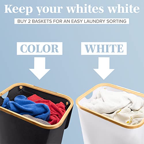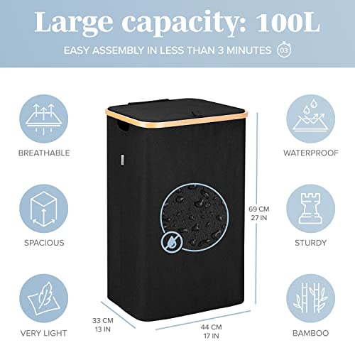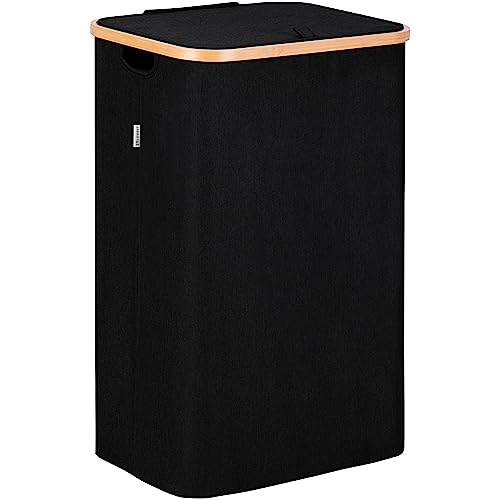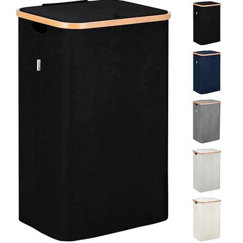 Lonbet - سبت غسيل ملابس مع غطاء، سبت غسيل كبير الحجم جدا بسعة 100 لتر لغسيل الملابس مزود بمقابض، سبت مع غطاء لغرف النوم، سبت غسيل طويل للحمام من خشب الخيزران من لونبيت
