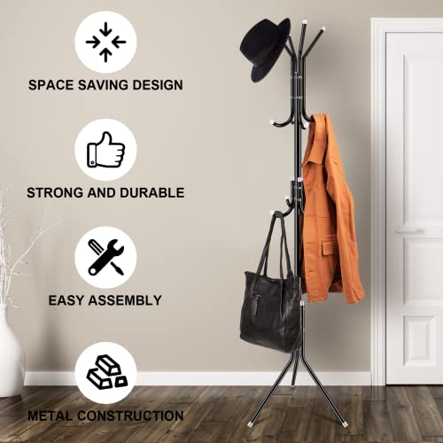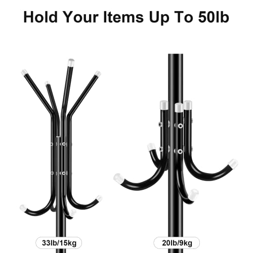 - 【تصميم ناعم وأنيق】: يتميز بقضبان مصقولة وخطافات رف، لن يمسك رف المعطف أو يتشابك على ملابسك. تم تصميم رف المعاطف القائم بذاته ليكون إضافة أنيقة وأنيقة لمكتبك والمدخل وغرفة النوم والمزيد.