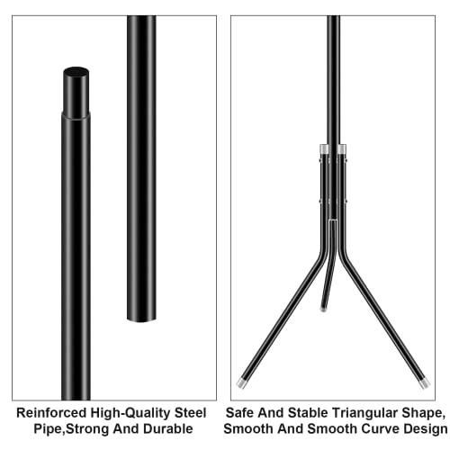 - 【رف معدني قوي ومتين】: تم تصميم رف المعاطف الخاص بنا ليكون خفيفًا بما يكفي لتحريكه بسهولة، والذي يحتوي على أرجل ثلاثية القوائم بزاوية 120 درجة في الجزء السفلي من الحامل لتثبيت الرف بإحكام حتى تعليقه على الحقائب والسترات الشتوية.