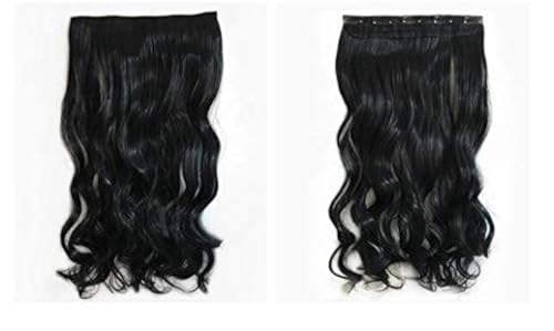 غير معروف - خصلات الشعر المستعار الطويلة والمصنعة من شعر اصطناعي للنساء بنمط مجعد ومموج - لون اسود