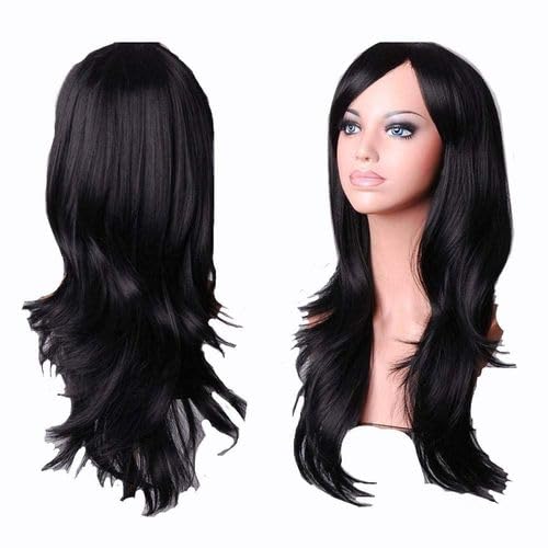 - شعر مستعار طويل: شعر مستعار نسائي أسود بطول كامل مع غرة جانبية أنيقة لمظهر طبيعي وجذاب
