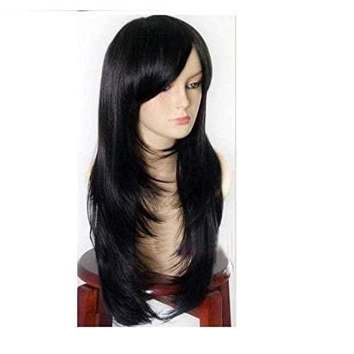 Generic - باروكة شعر طويل أسود بغرة جانبية، شعر مستعار نسائي بطبقات، مظهر طبيعي