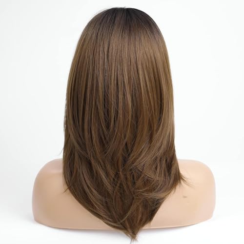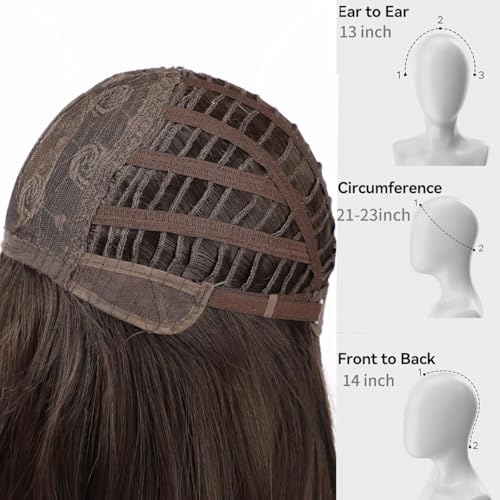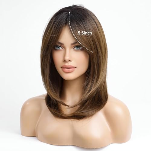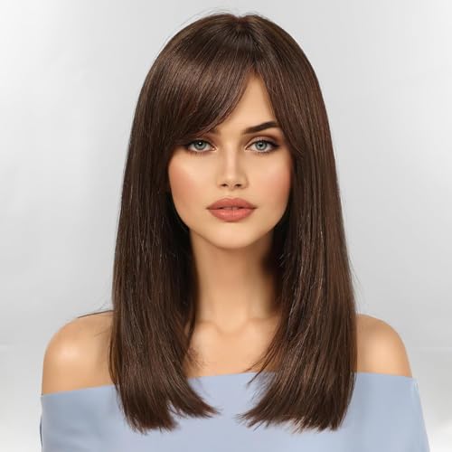 Generic - شعر مستعار صناعي طويل مموج بطول الكتف مع غرة بكثافة 150% من الياف صناعية مقاومة للحرارة بطول 22 انش - 50 سم الى 55 سم - JW73-9/6 جديد - اسود الى بني متوسط