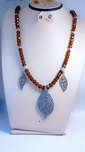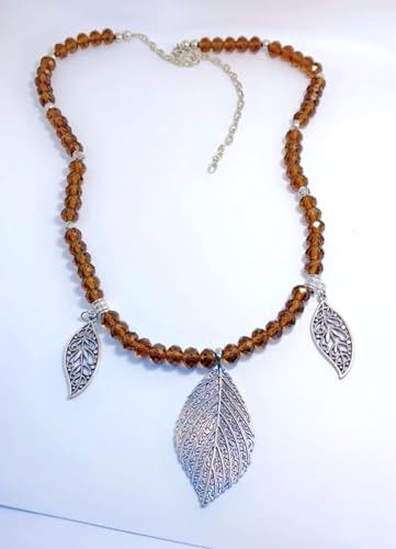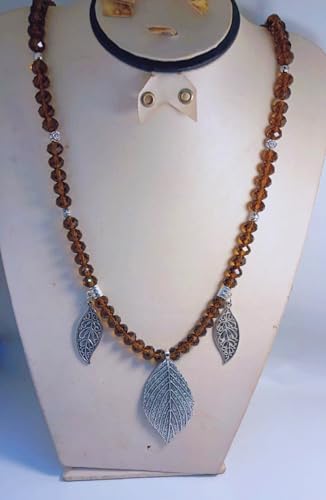 Generic - قلادة طويلة من الكريستال البنى مع دلايات مطليه فضه مناسبه للهدايا ولجميع الاعمار، للنساء