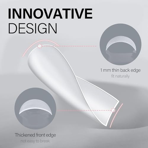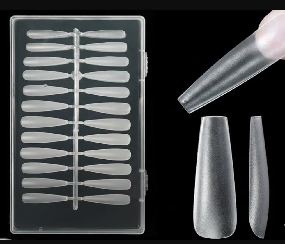 Generic - اطراف اظافر جل طويلة كوفين من 150 قطعة، 15 مقاسا واضحا بالضغط على قاعدة الاظافر، اطراف كاذبة على شكل تابوت كامل من الاكريليك لوصلات الاظافر بنفسك لصالونات التجميل، جل ناعم غير لامع