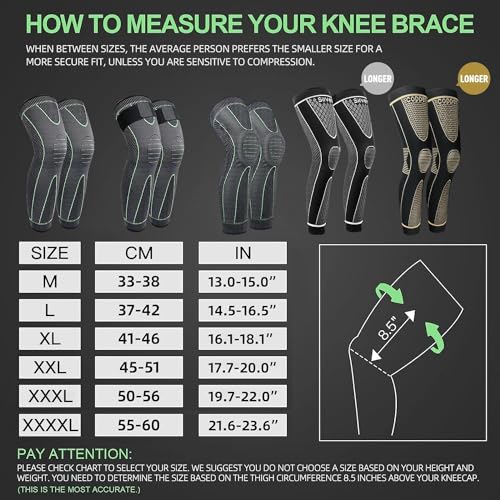 Generic - اكمام ضاغطة طويلة لحماية الساقين والركبة عند ركوب الدراجات وكرة القدم وكرة السلة وتساعد مرضى التهاب المفاصل وتقلل من الدوالي وتورم الساقين للرجال والنساء