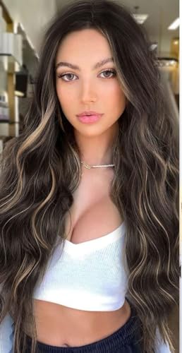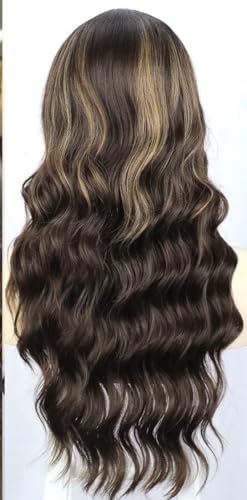 Generic - باروكة شعر صناعي طويلة بلون بني غامق وخصل شقراء هايلات في المقدمة