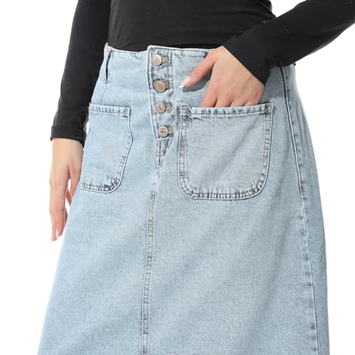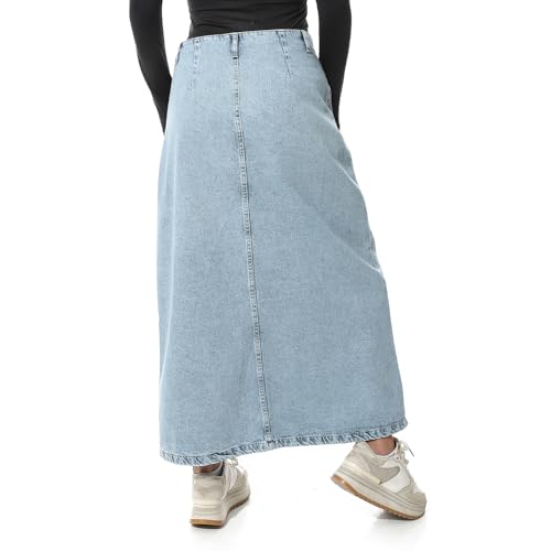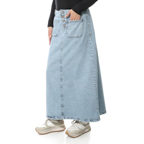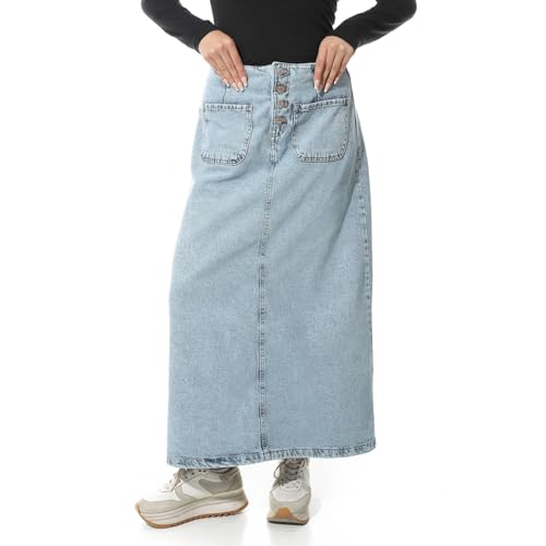 Coctail - جيبة ماكسي طويلة من الجينز بازرار امامية وجيبين - ازرق-6425