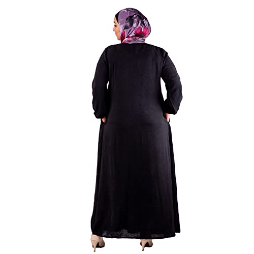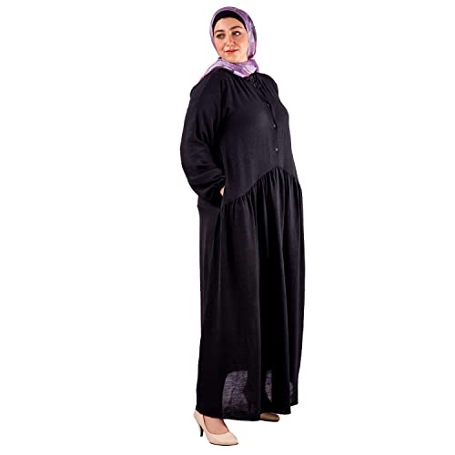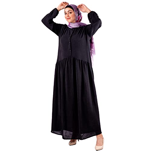 Generic - فستان طويل اسود سادة محجبات اكمام طويلة قطن نساء