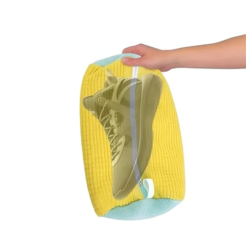 Generic - شنطة طويلة من الالياف - شنطة غسيل احذية فاخرة مع واقي غسيل قابل لاعادة الاستخدام، الياف طويلة داخلية، سحاب امن، شبكة جيدة التهوية، قابلة للغسل في الغسالة، اصفر، طول 14.75 انش