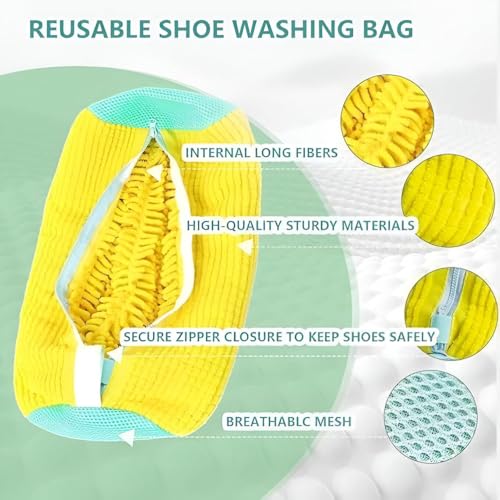 - حقيبة غسيل أحذية فاخرة بألياف داخلية طويلة و1000 شعيرات ناعمة توفر تنظيفًا بزاوية 360 درجة مع حماية الأحذية من التلف أثناء الغسيل في الغسالة.