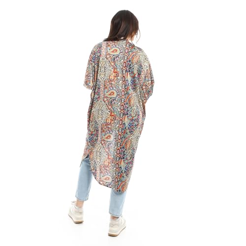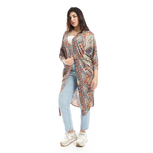 Coctail - كارديجان مفتوح أمامي للنساء، واسع بأكمام ثلاثة أرباع، مطبوع بالزهور بتصميم بوهيمي، متعدد الألوان، مقاس فضفاض