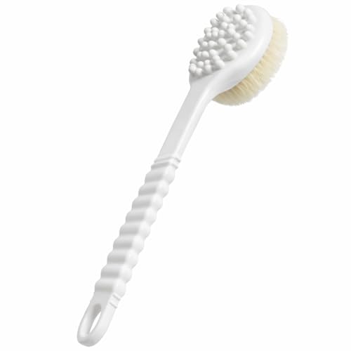Generic - فرشاة استحمام بمقبض طويل مزدوجة الجوانب بشعيرات ناعمة وعقد تدليك لتنظيف البشرة العميقة وتقشير الظهر بمقبض غير قابل للانزلاق، فرشاة للعناية بالجسم بالوان عشوائية، 32 سم