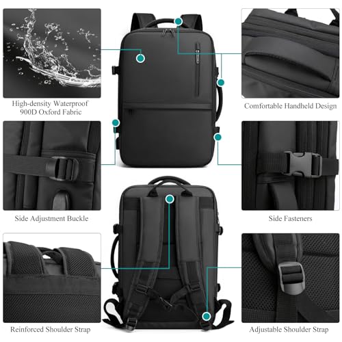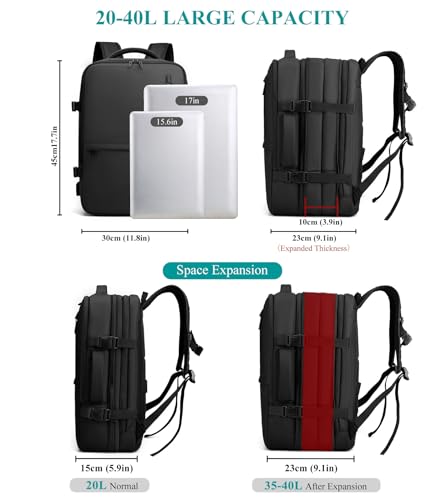 Long Keeper - شنطة ظهر للاب توب قابلة للتوسيع للرجال والنساء مناسبة للسفر، شنطة عمل مقاومة للماء تناسب لاب توب مقاس 15.6/17 بوصة مع منفذ شحن USB من لونج كيبر