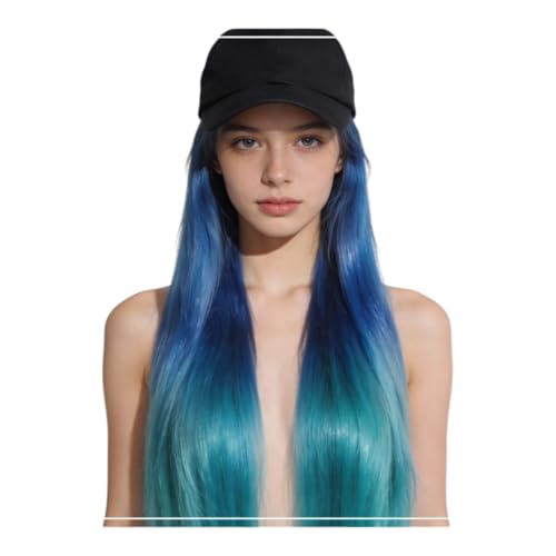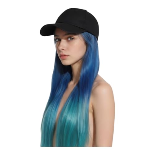 Generic - باروكة شعر طويل بتدرج أزرق وأخضر، شعر مستعار صناعي بطول كامل مع قبعة سوداء