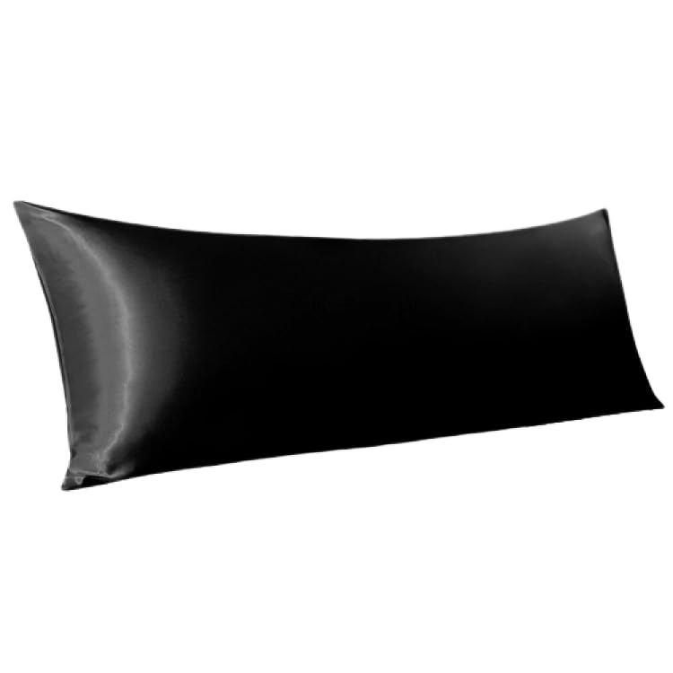 Generic - كيس مخدة طويلة مصنوعة من الساتان باللون الاسود