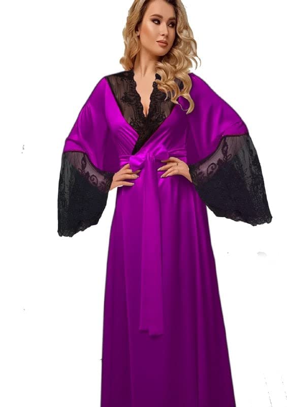 Generic - روب لانجيري ساتان ارجواني طويل