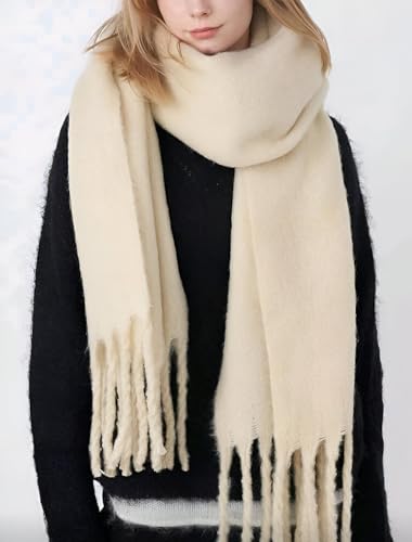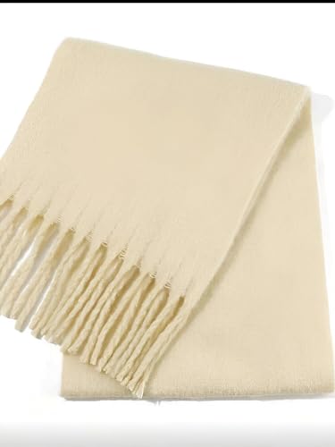 Generic - شال طويل - ملفوف ناعم منسوج بلون أزرق فاتح مع شراشيب، طبقة شتوية أنيقة للأيام الباردة
