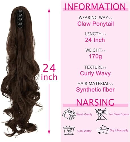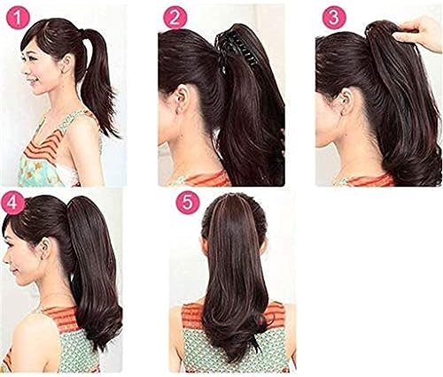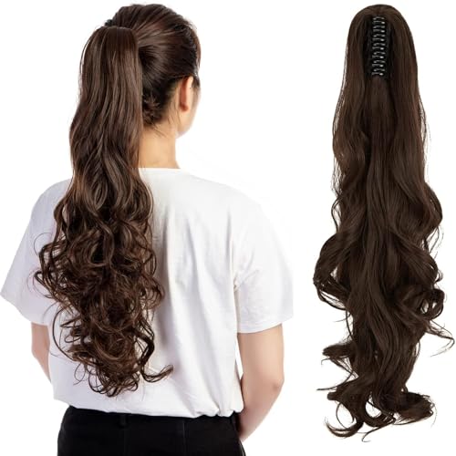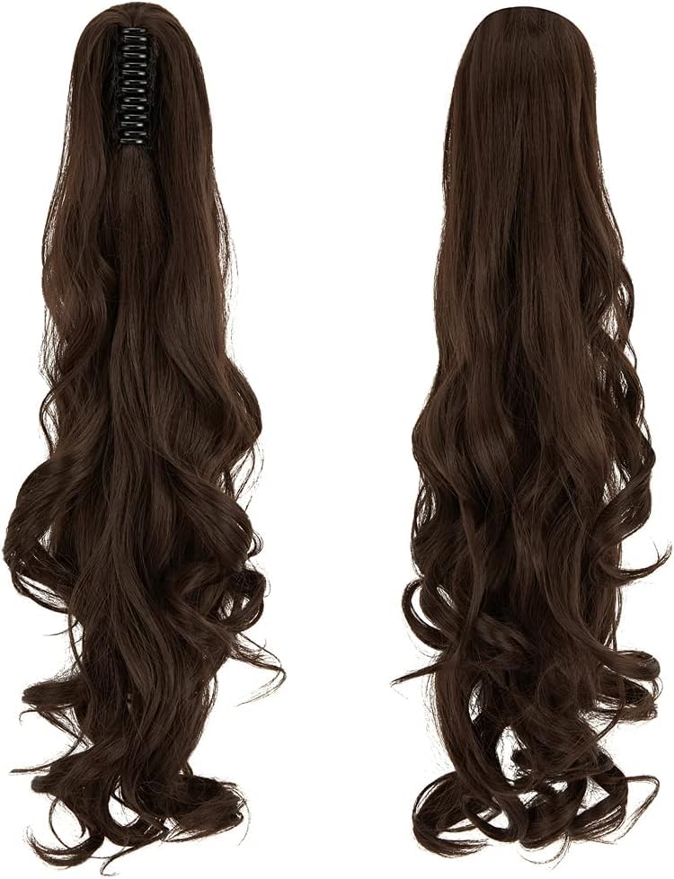 Generic - وصلة شعر قصيرة وطويلة بمشبك لطيف على ذيل الحصان، وصلات شعر صناعية مفرودة ومجعدة (24 انش، بني متوسط)