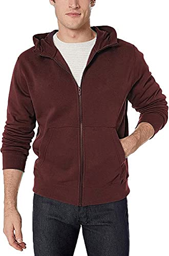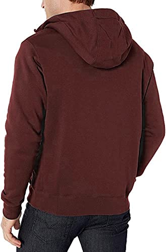 Generic - سويت شيرت بيسيك كم طويل كاجوال سادة بغطاء للرأس - مقاس M ، لون احمر داكن للكبار من الجنسين