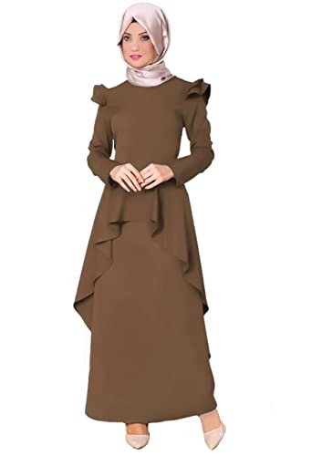 Generic - فستان ماكسي باكمام طويلة ولون بيج غامق